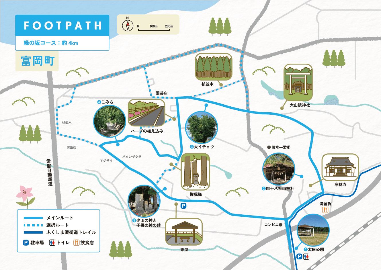 四季折々の自然や里山の風景に出会えるコース。神社や森の小径を歩きながら、大イチョウが黄金色に染まる秋は特におすすめです。