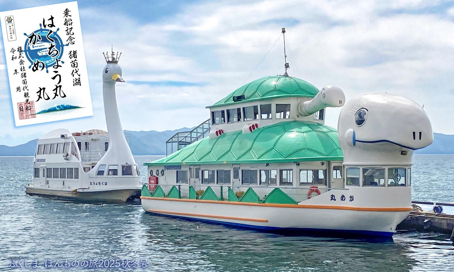 2025年7月にラムサール条約湿地に登録された猪苗代湖を、かわいい遊覧船「はくちょう丸」「かめ丸」で巡ろう! 乗船記念にぴったりな『御船印』も頒布しています。 ※掲載情報は2025年8月時点のものです。掲載後に情報が変更となる場合があります。