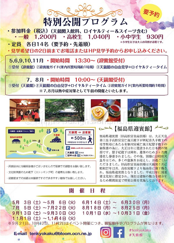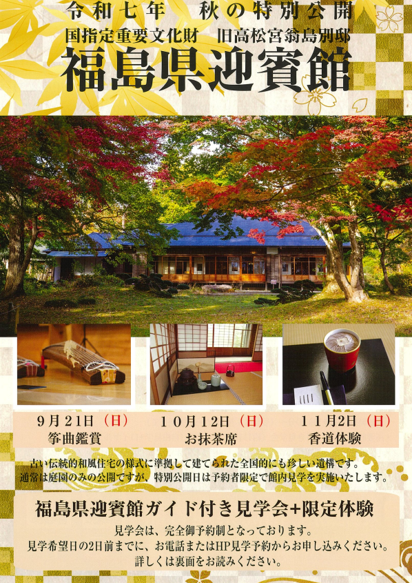 3日間限定で、福島県迎賓館ガイド付き見学会+限定体験を開催します!