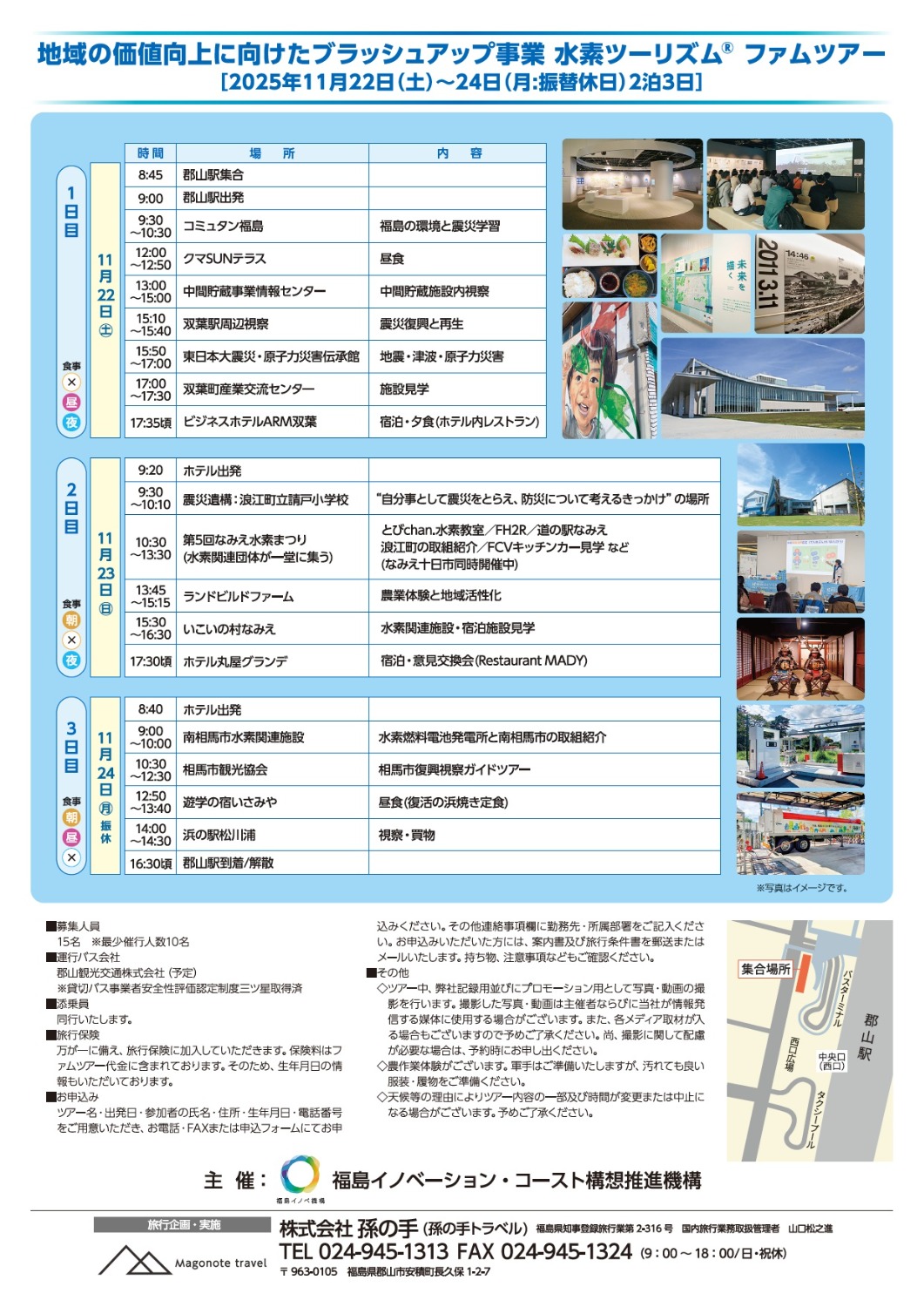 水素社会の実現に向けたまちづくりを行う浪江町をはじめ、復興と脱炭素社会を目指して未来のまちづくりを行っているイノベ地域の今を体感します。