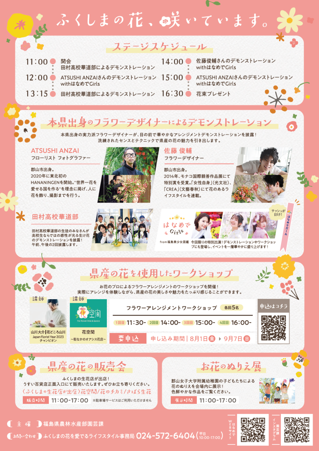 お子さまから大人まで楽しめる、県産のお花を使ったワークショップも実施します(※数量限定・事前予約制)