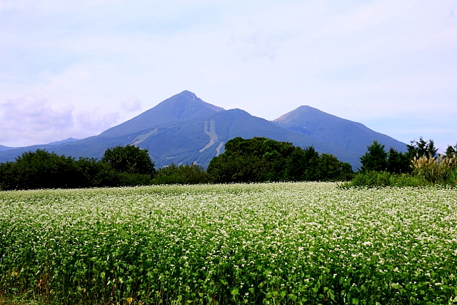 磐梯山と蕎麦畑