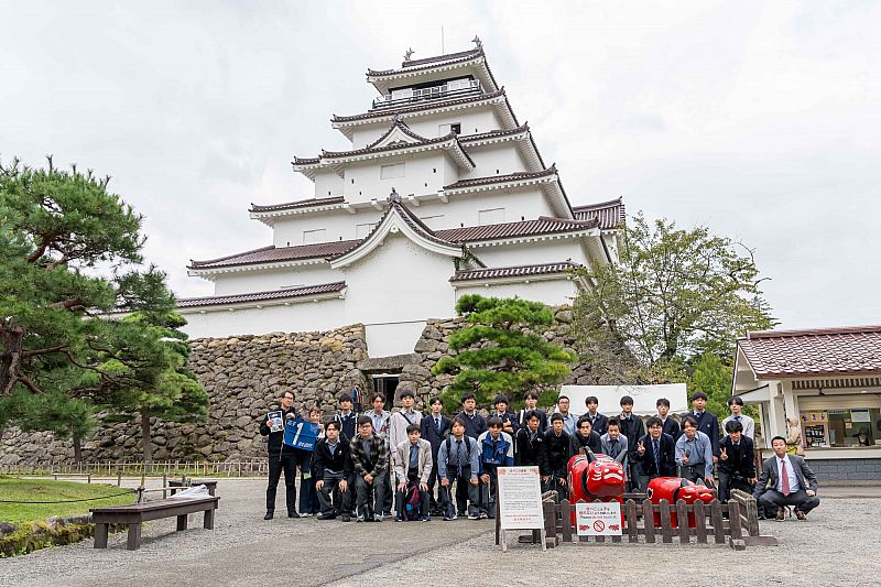 2日目は会津若松市へ移動し、鶴ヶ城前で集合写真を撮影した後、班別行動を実施。鶴ヶ城天守閣の展示を見学したほか、展望層から市街を一望したり、会津若松の街並みを散策する班など、それぞれが思い思いに歴史と文化を体感しました。