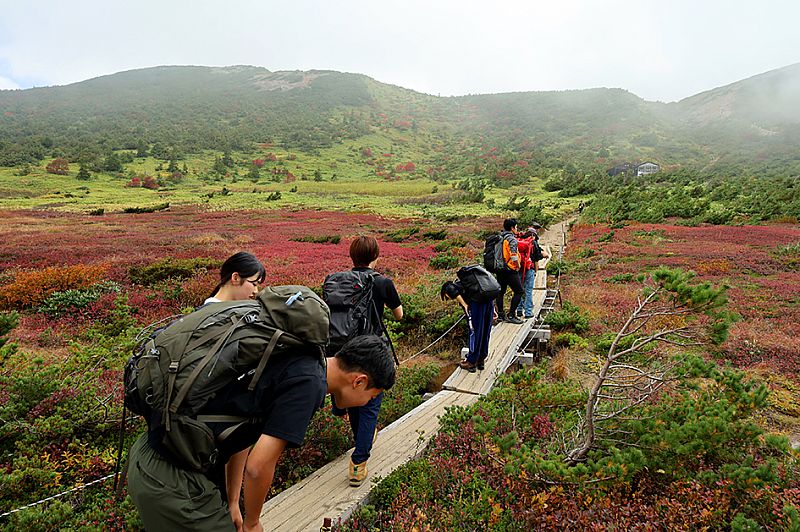 午後は一切経山への登山をスタートしました。協会の登山ガイド2名が参加者の前後へ付き、浄土平レストハウスを出発。コースの難易度は中程度で約4時間のコースを楽しみました。