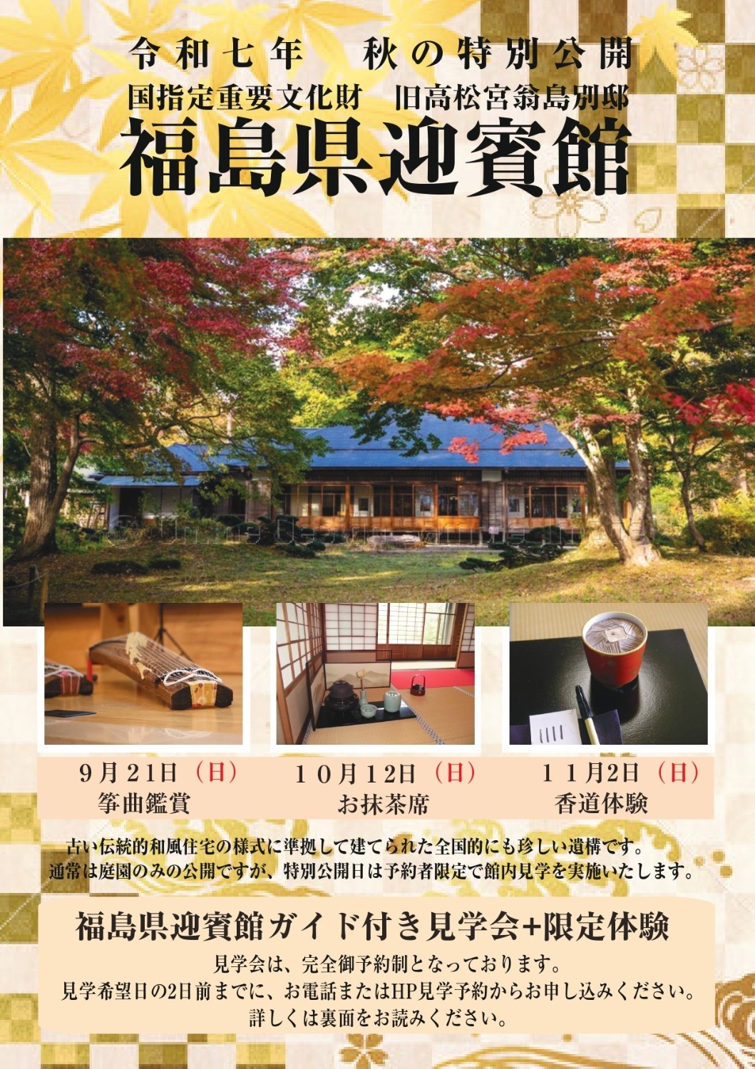 福島県迎賓館は、通常は庭園のみの公開ですが、特別公開日には予約者限定で館内見学を実施しています。