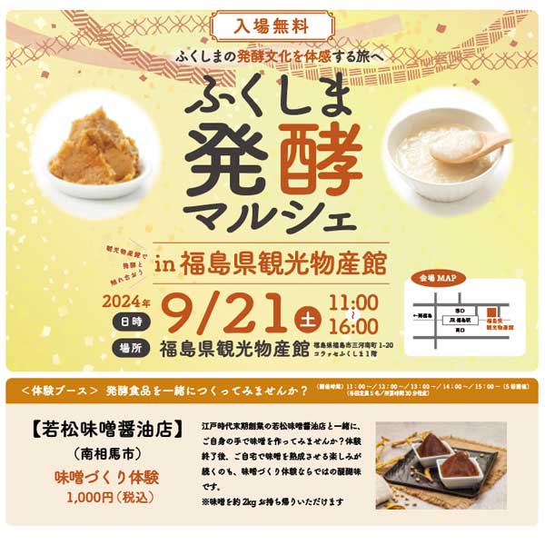 体験ブースでは「味噌づくり」が体験でき、物販ブースでは福島県の様々な発酵食品が販売されます。