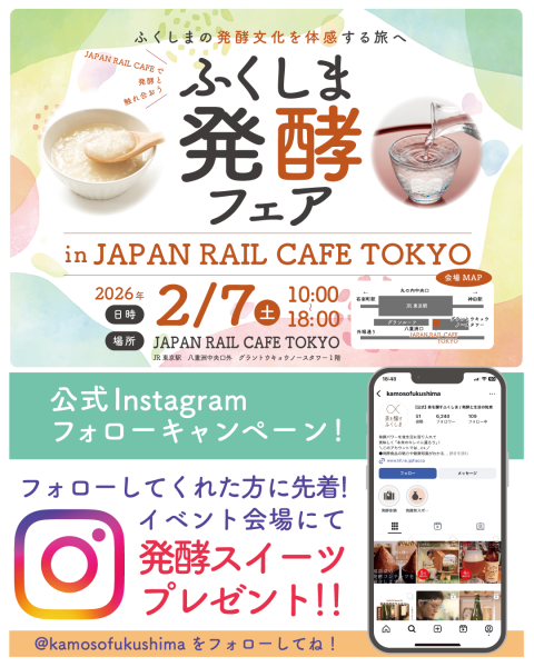 「美を醸すふくしま」公式Instagram(@kamosofukushima)をフォローすると、会場で発酵スイーツをプレゼント!
