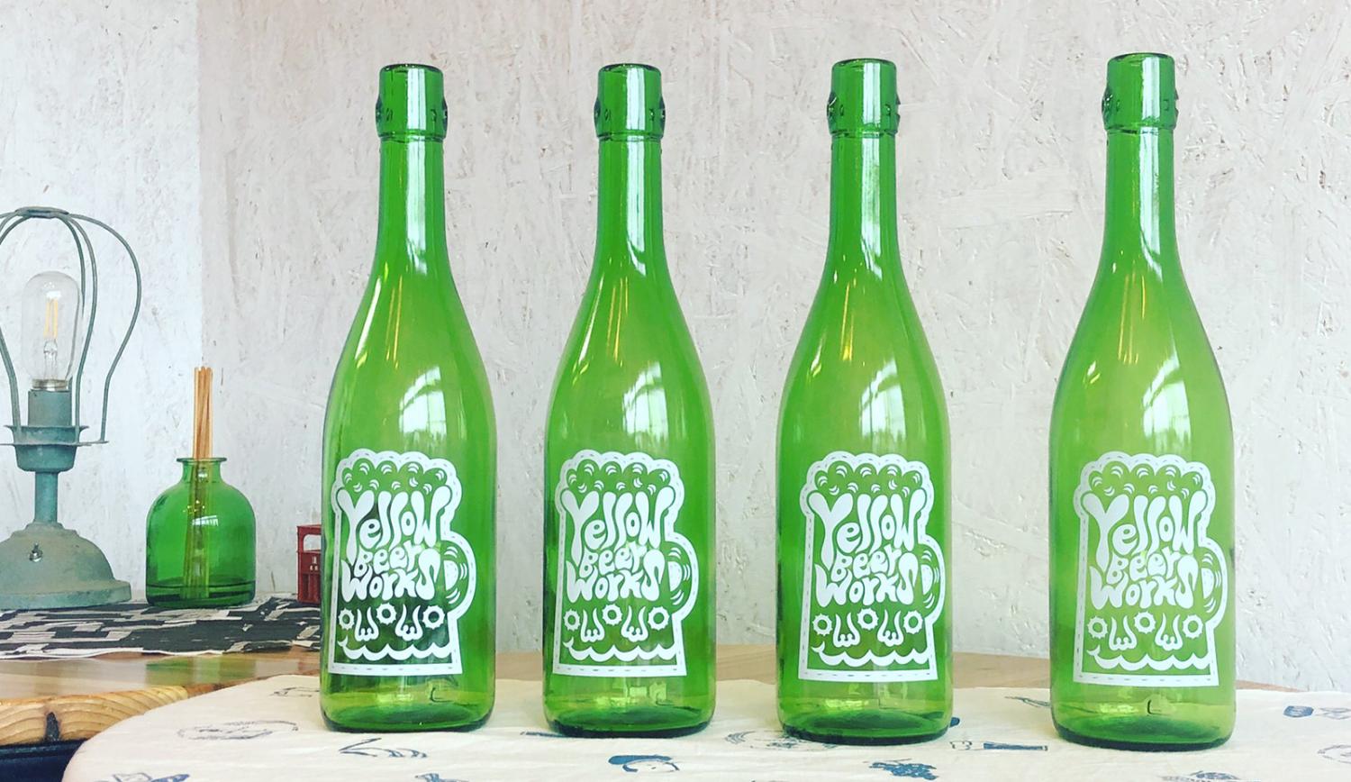 Yellow Beer Worksのクラフトビールは、店内ではグラスで、テイクアウトでは缶や専用のオリジナルボトルで提供しています。ボトル本体は1本 550円 (10%税込)で、再利用も可能です。