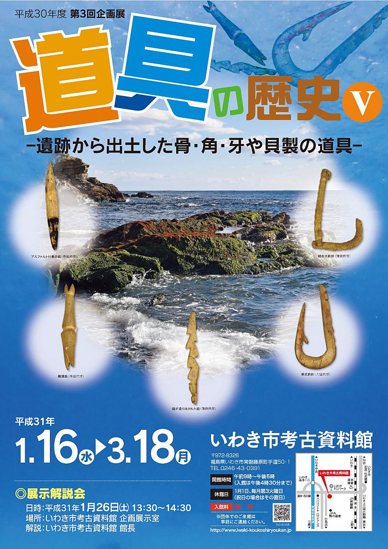 特集レポートいわき市考古資料館 平成30年度第3回企画展「道具の歴史Ⅴ-遺跡から出土した骨・角・牙や貝製の道具」開催中![平成31年1月24日(木)更新]