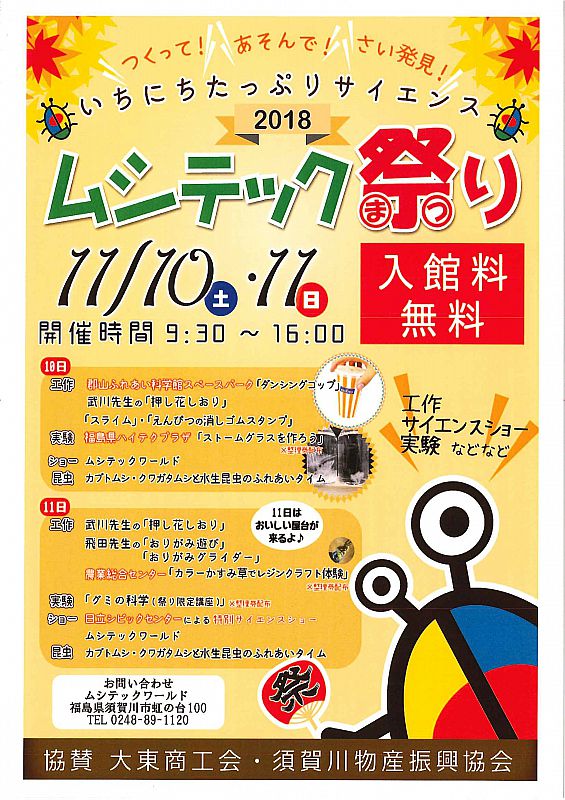 お知らせ✾2018ムシテック祭り 入館料無料!!✾