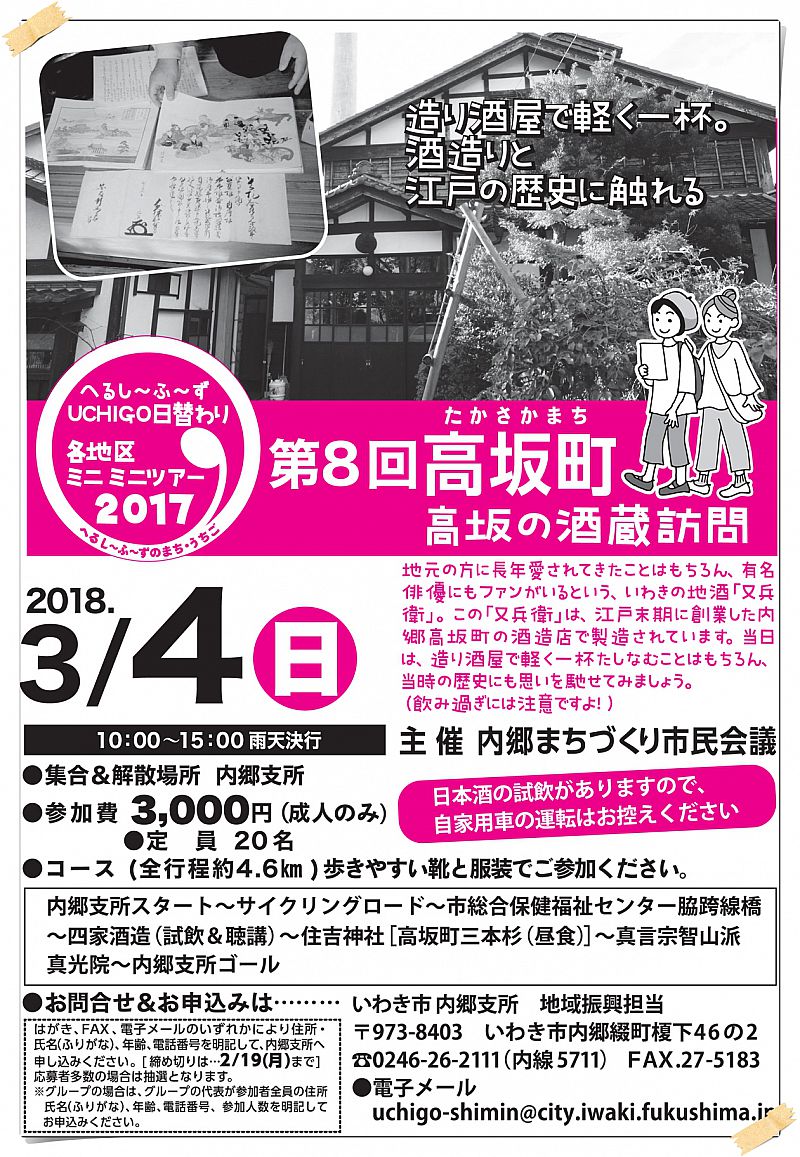 特集レポートミニミニツアー 第8回高坂町「高坂の酒蔵訪問」参加者募集のお知らせ