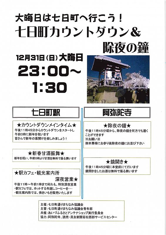 お知らせ❁七日町カウントダウン&除夜の鐘❁