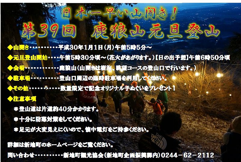 お知らせ日本一早い山開き鹿狼山元旦登山