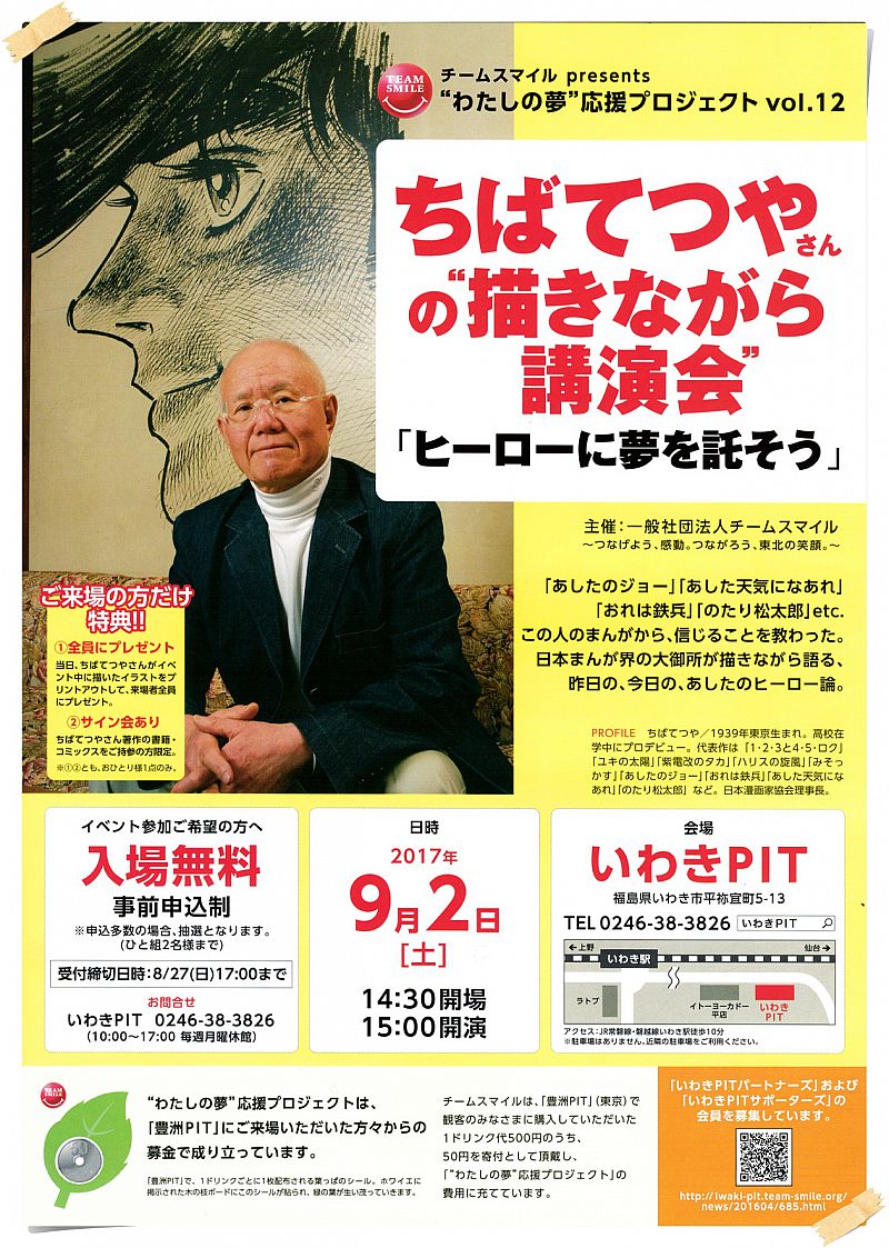 特集レポート《事前申込制》ちばてつやさんの"描きながら講演会"「ヒーローに夢を託そう」 9月2日(土)開催!