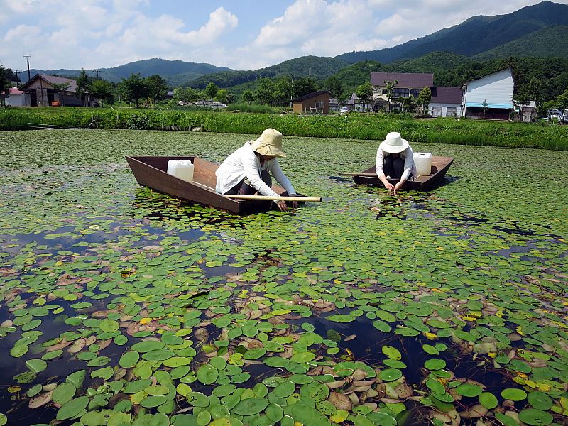 特集レポート裏磐梯ジュンサイ摘み体験始まりました。