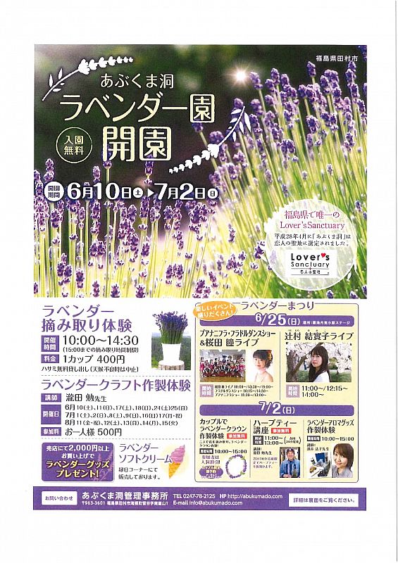 お知らせあぶくま洞 ✾ ラベンダー園開園 ✾ Lover's Sanctuary