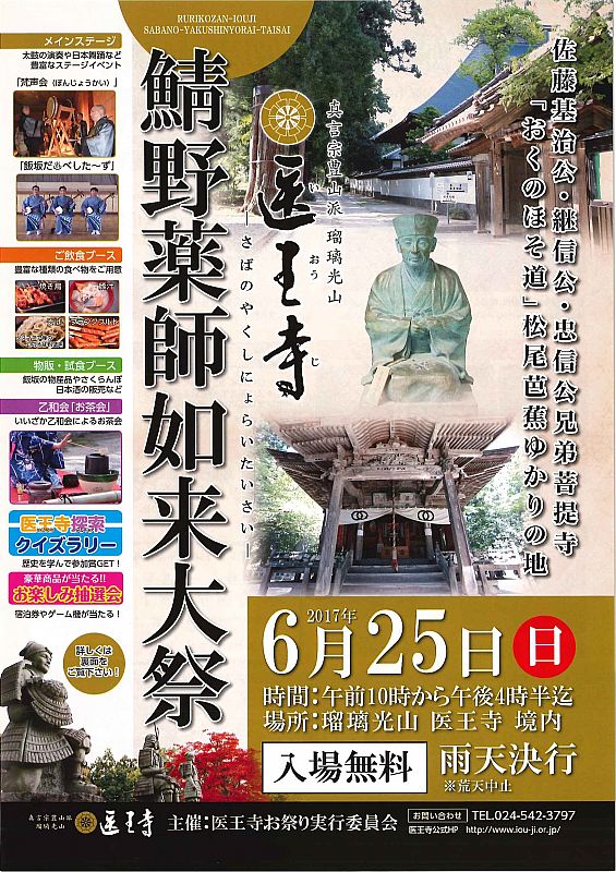 お知らせ6/25「医王寺 鯖野薬師如来大祭」開催!