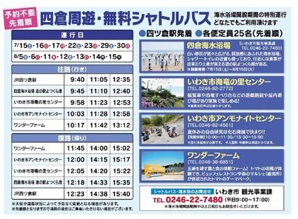 特集レポート海水浴場開設期間中の四倉周遊・無料シャトルバスのお知らせ