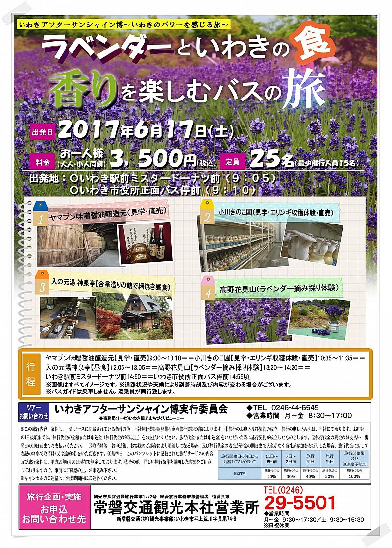 特集レポート《事前申込制》いわきアフターサンシャイン博ツアー「ラベンダーといわきの食 香りを楽しむバスの旅」 6月17日(土)催行!