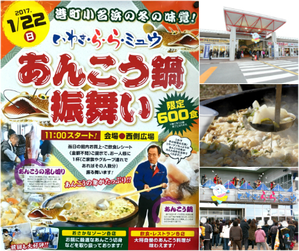特集レポートいわき・ら・ら・ミュウ 29年1月イベント情報 毎冬恒例「あんこう鍋振舞い」1月22日(日)開催!