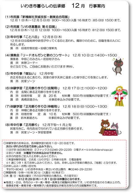特集レポートいわき市暮らしの伝承郷 12月のイベント情報について