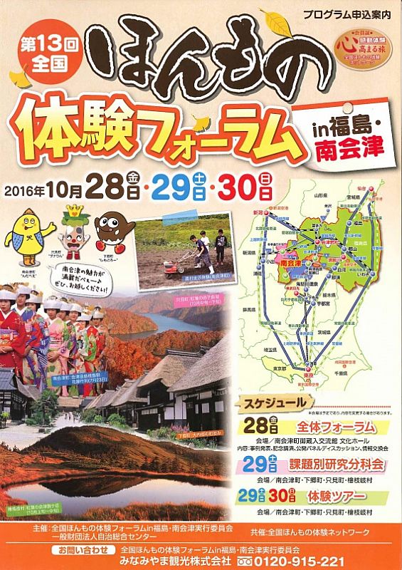 お知らせ「第13回全国ほんもの体験フォーラムin福島・南会津」開催のお知らせ