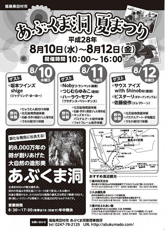 お知らせ8/10~8/12 あぶくま洞夏まつり開催