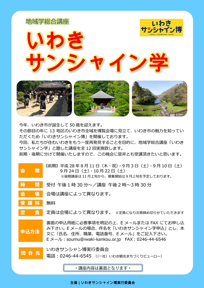 特集レポート地域学総合講座「いわきサンシャイン学」 受講者募集!