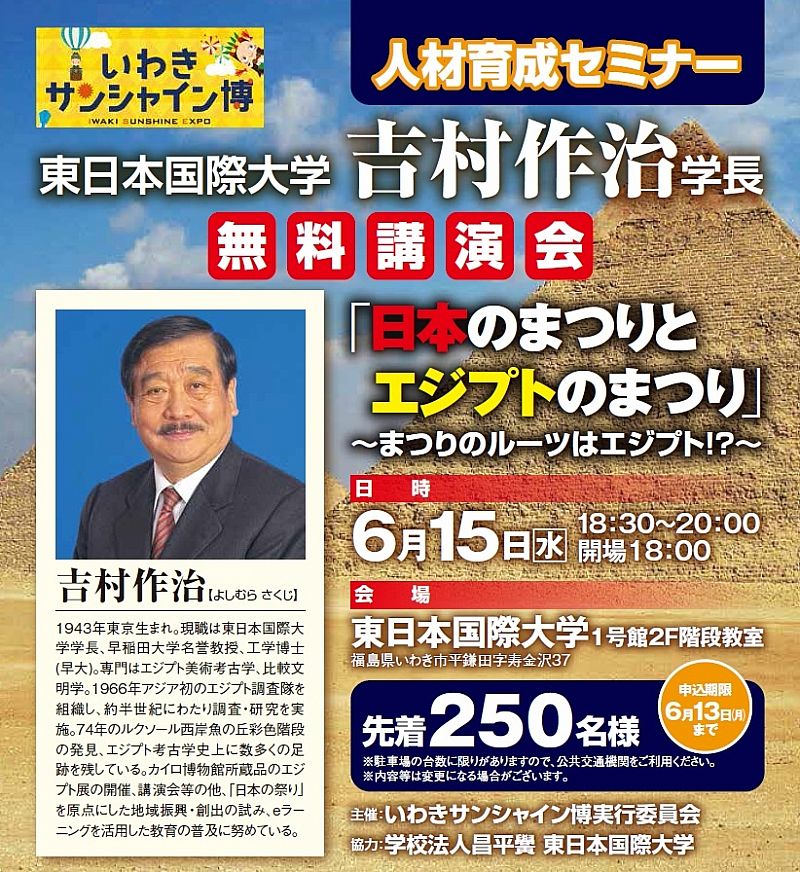 特集レポートいわきサンシャイン博 人材育成セミナー 「日本のまつりとエジプトのまつり」参加者募集中!