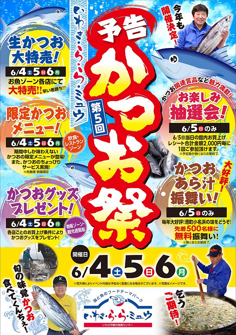 お知らせいわき・ら・ら・ミュウ「かつお祭」開催!!