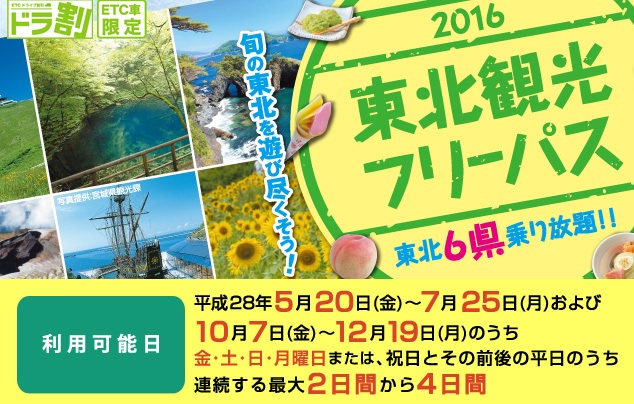 お知らせお得にETCでの旅「2016東北観光フリーパス」のお知らせ