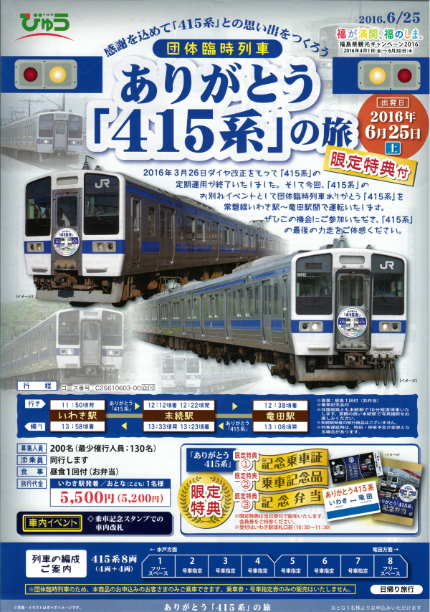 特集レポートアフターDC 団体臨時列車ありがとう「415系」の旅 6月25日(土)運行!