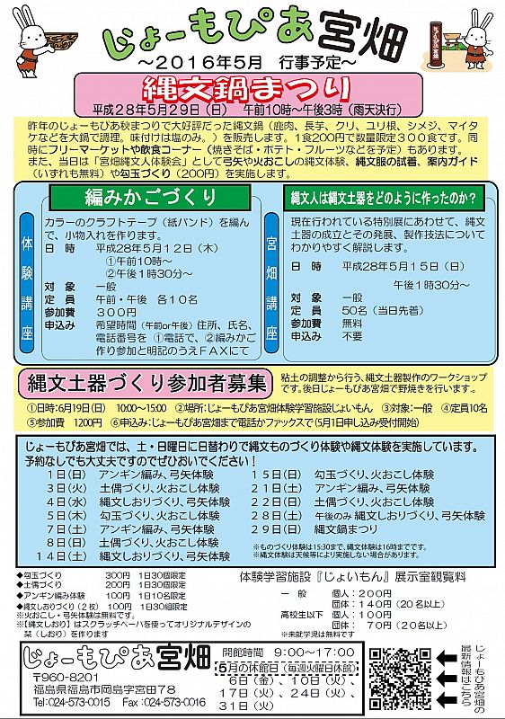 お知らせじょーもぴあ宮畑「縄文鍋まつり」開催!