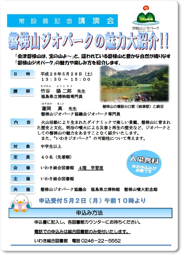 特集レポートいわき総合図書館 記念講演会「磐梯山ジオパークの魅力大紹介!」参加者募集中!