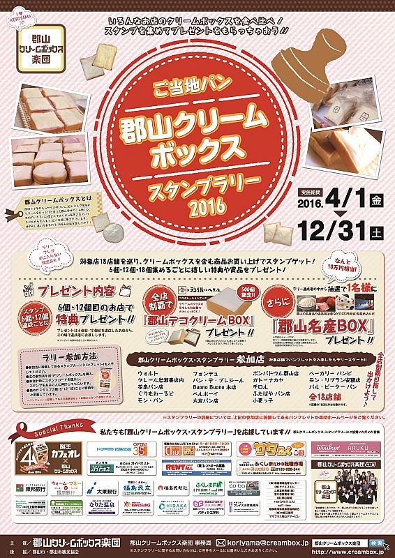お知らせ郡山クリームボックススタンプラリー2016開催。