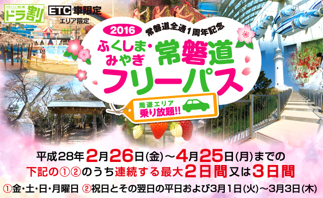 お知らせ「2016 ふくしま・みやぎ常磐道フリーパス」のお知らせ