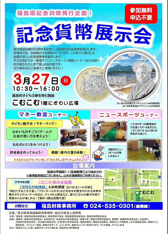お知らせ3/27「記念貨幣展示会」開催!