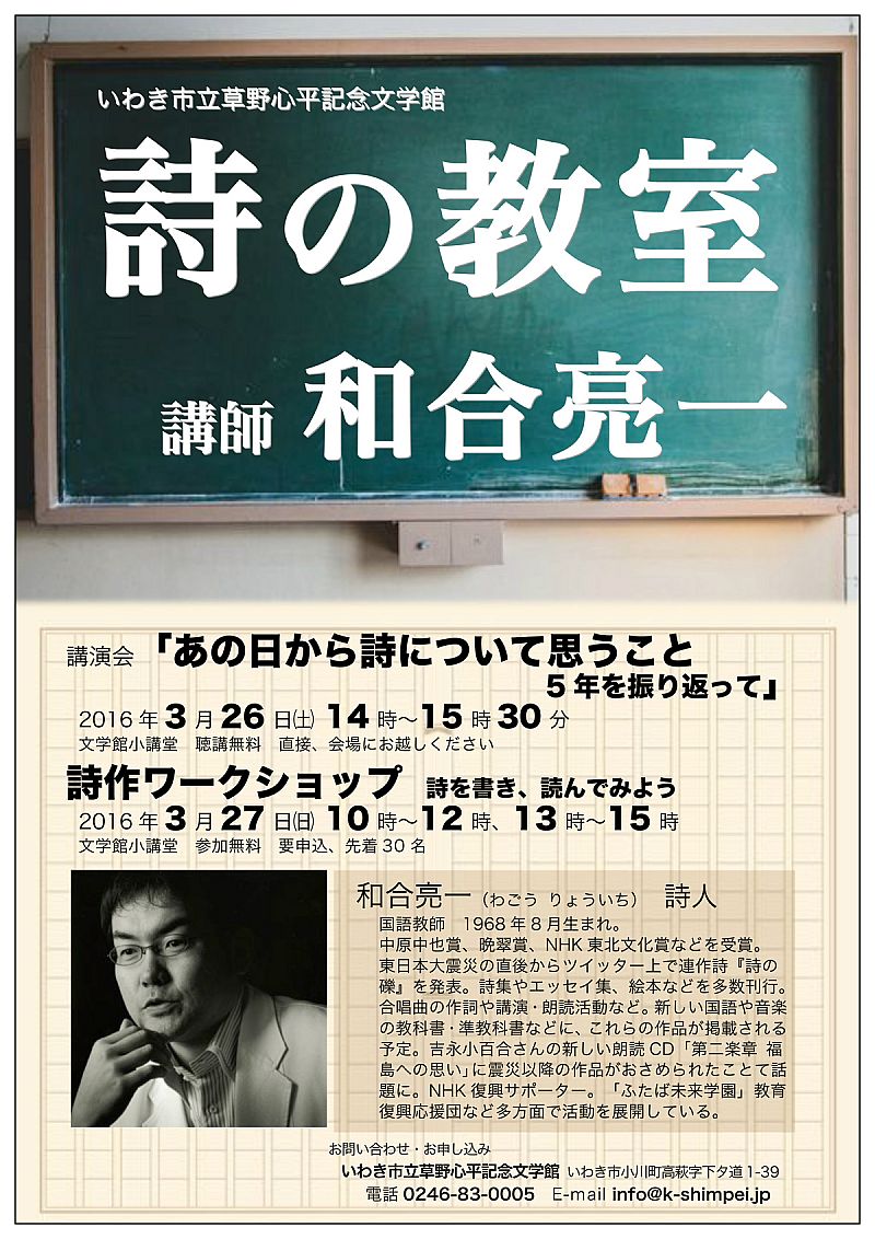 特集レポートいわき市立草野心平記念文学館 平成27年度詩作講座「詩の教室」 3月26日(土)・27日(日)開催!