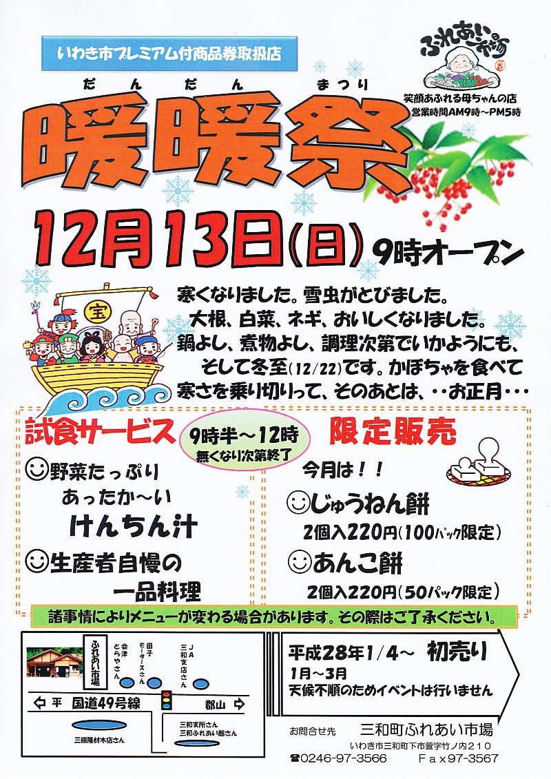 特集レポート三和町ふれあい市場 12月イベント「暖暖祭」13日(日)開催!