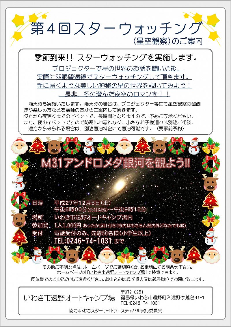 特集レポートいわき市遠野オートキャンプ場「第4回スターウォッチング」12月5日(土)開催!