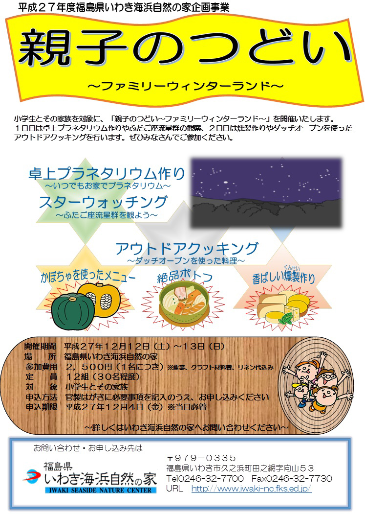 特集レポートいわき海浜自然の家 親子のつどい~ファミリーウィンターランド~参加者募集中!