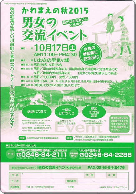 特集レポートかわまえの秋2015 男女の交流イベント参加者募集中!
