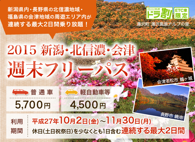 お知らせ2015新潟・北信濃・会津週末フリーパスのお知らせ