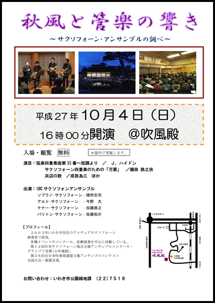 特集レポート秋風と管楽の響き~IBCサクソフォンアンサンブル~今週末開催
