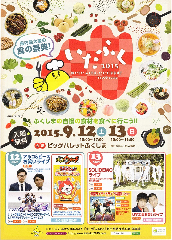 お知らせ9/12.13「おいしいふくしま、いただきます!」フェスティバル2015開催