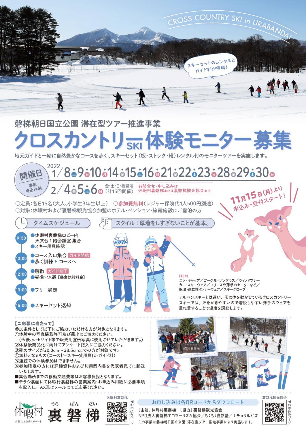 お知らせ裏磐梯の雪景色を眺めながら、歩くスキーを楽しみませんか?クロスカントリーSKI体験モニター募集中!
