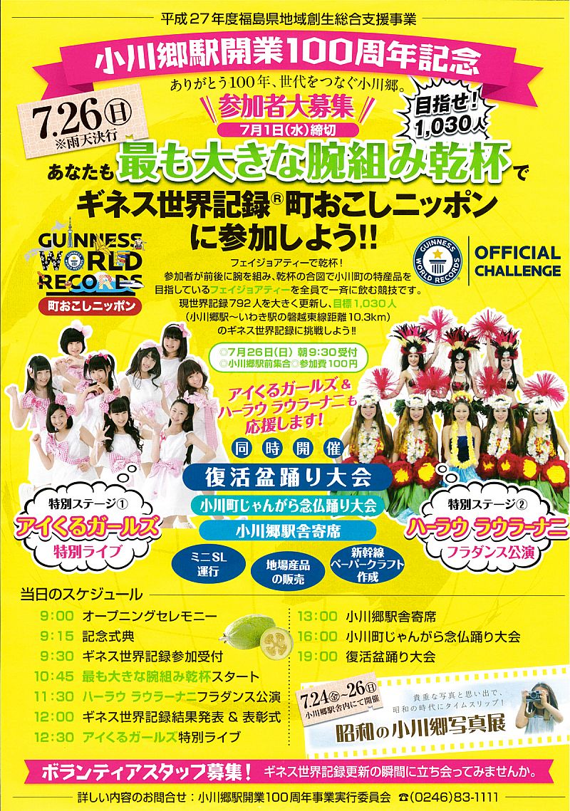 特集レポート小川郷駅開業100周年記念「最も大きな腕組み乾杯」 7月26日(日)開催!