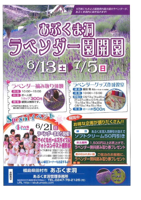 お知らせ「あぶくま洞ラベンダー園」開園中!