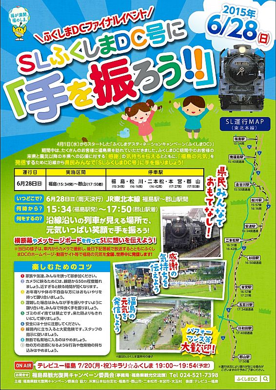 お知らせ6/28 SLふくしまDC号に「手を振ろう!!」