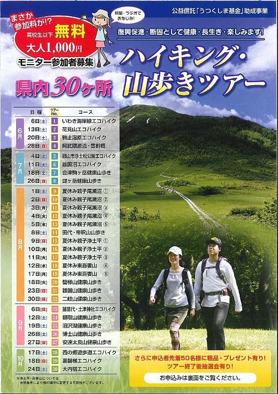 お知らせ「ハイキング・山歩きツアー」のお知らせ